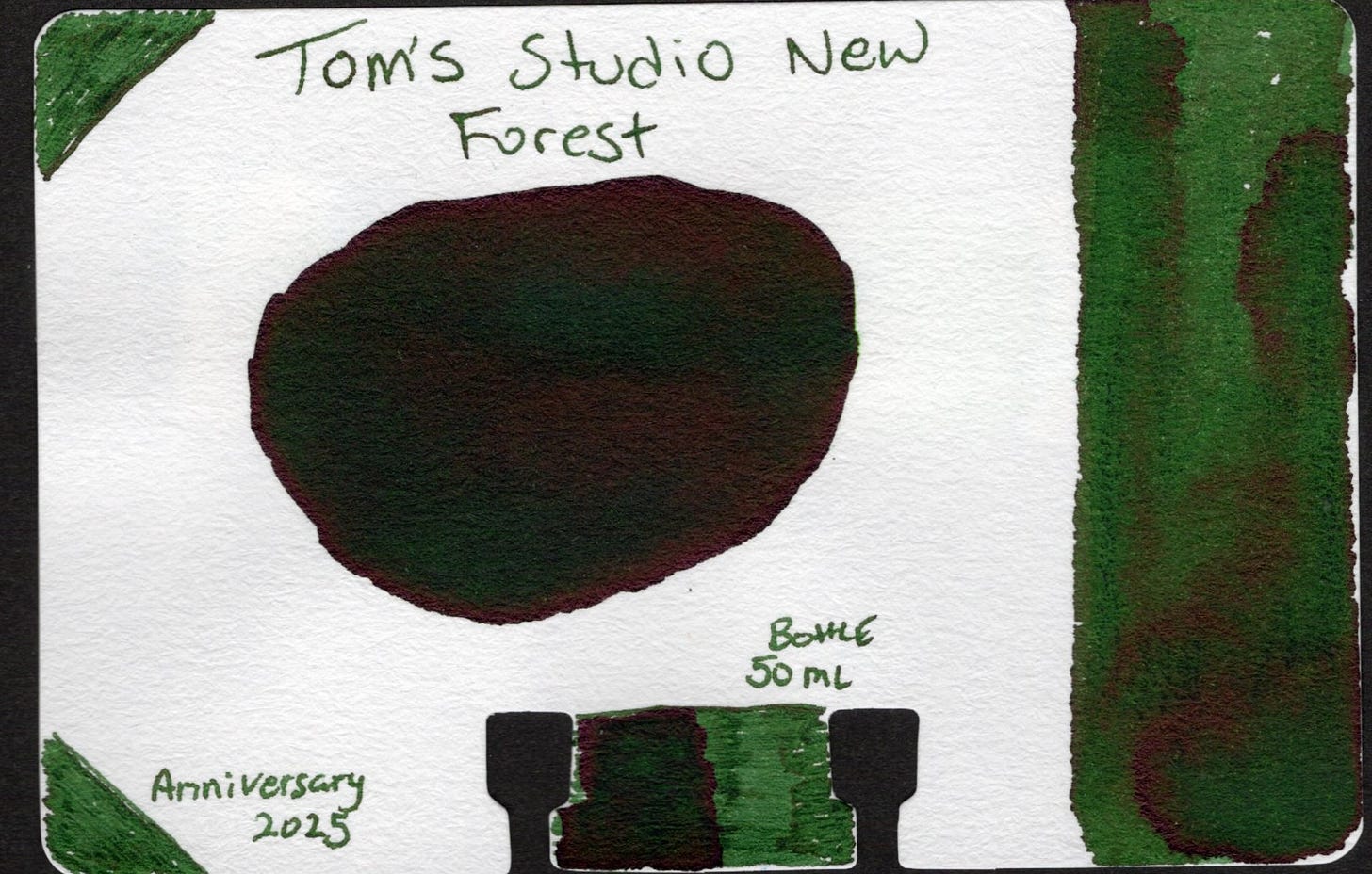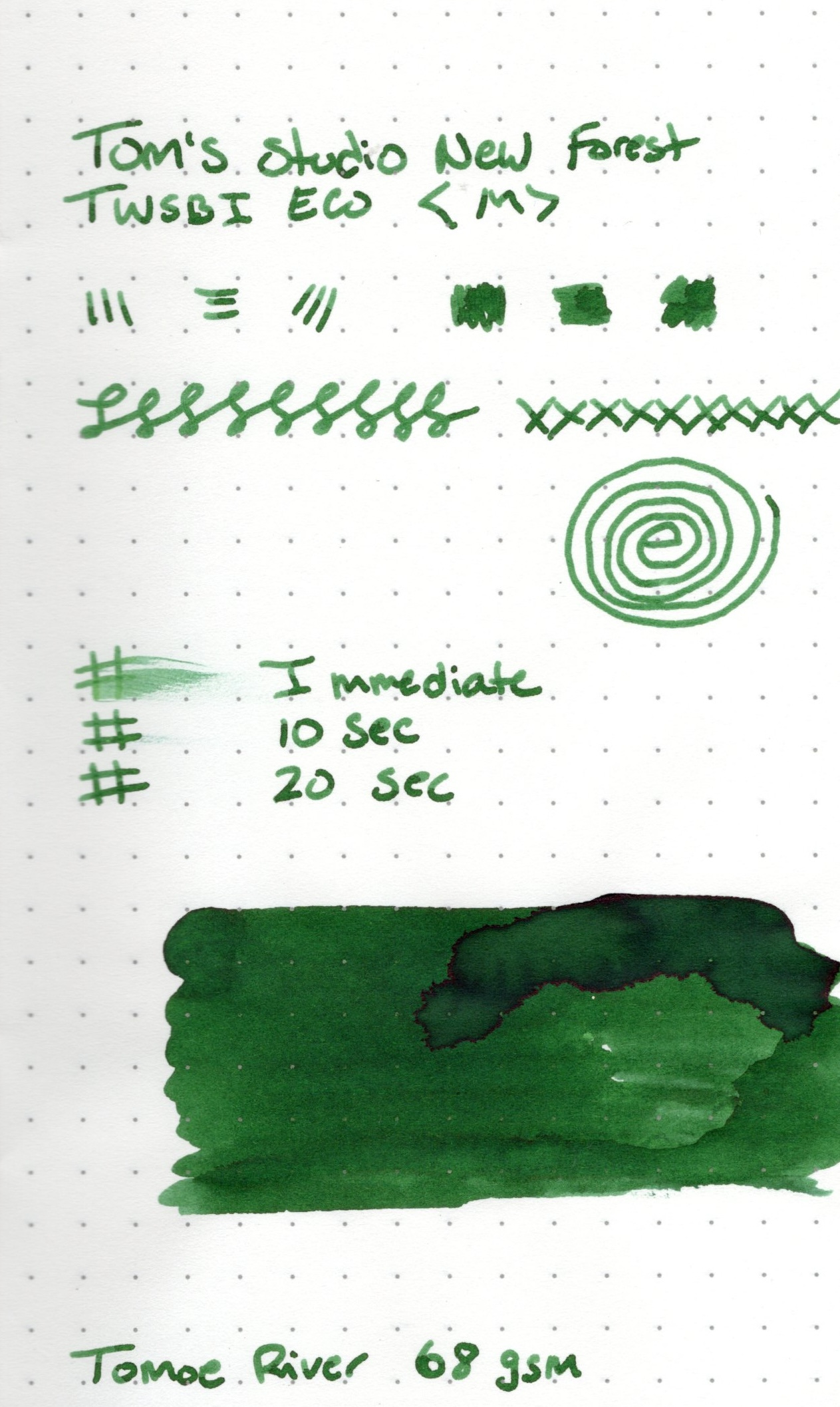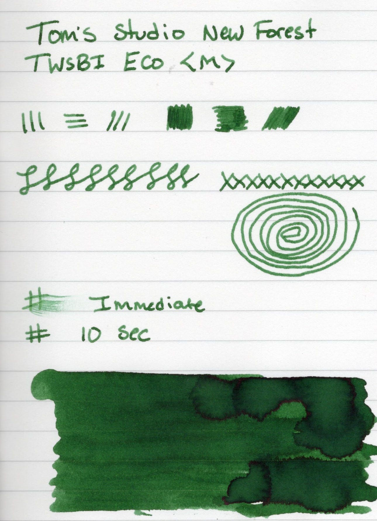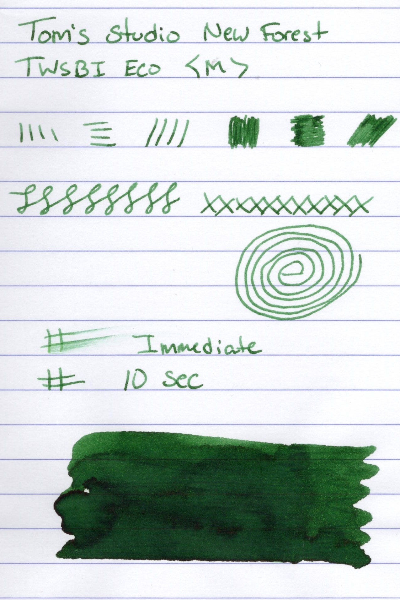 Today though I'm focused on the ink. I've got two inks from Tom's Studio, and my newest pickup is New Forest. At time of this writing New Forest is in stock at Atlas Stationers.