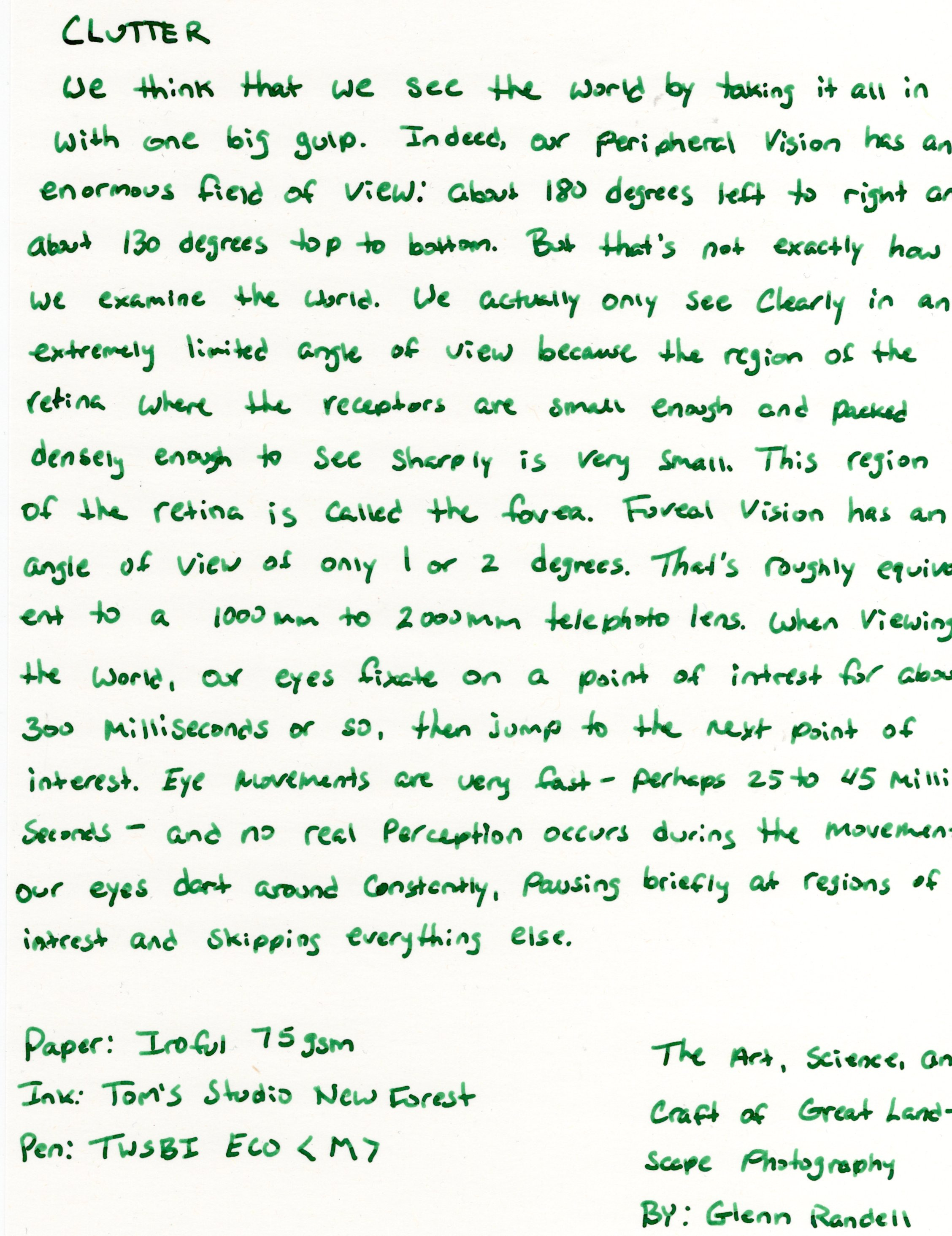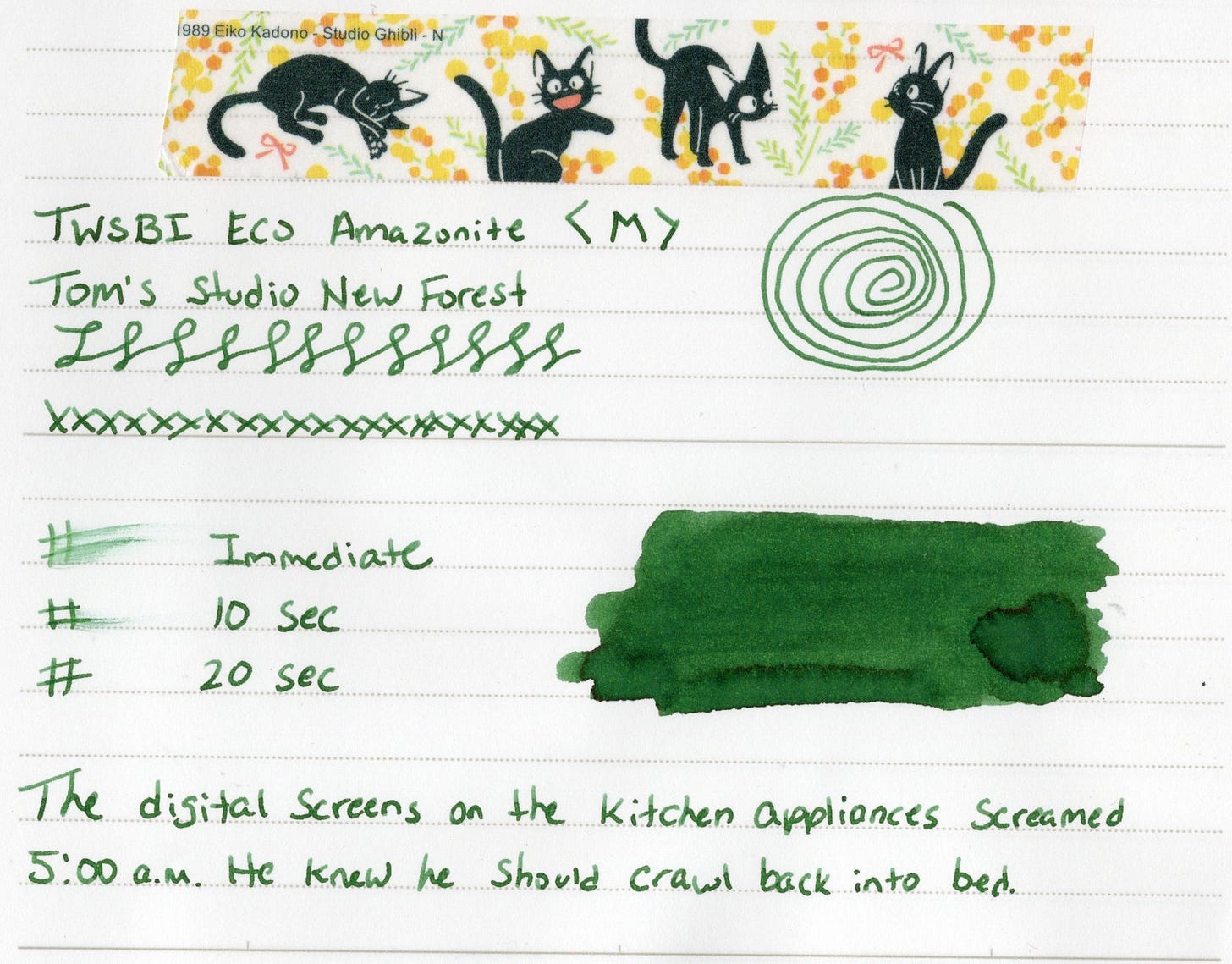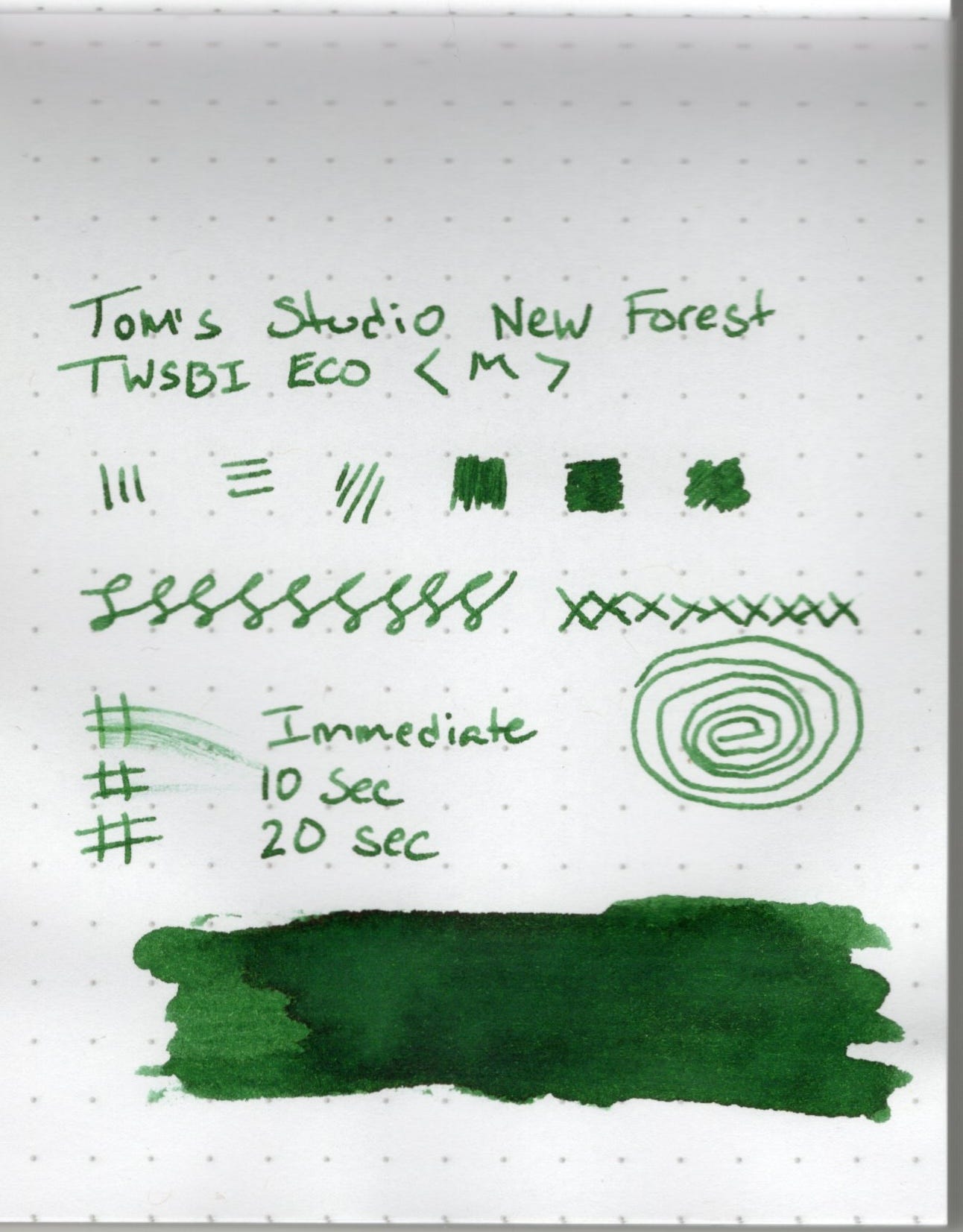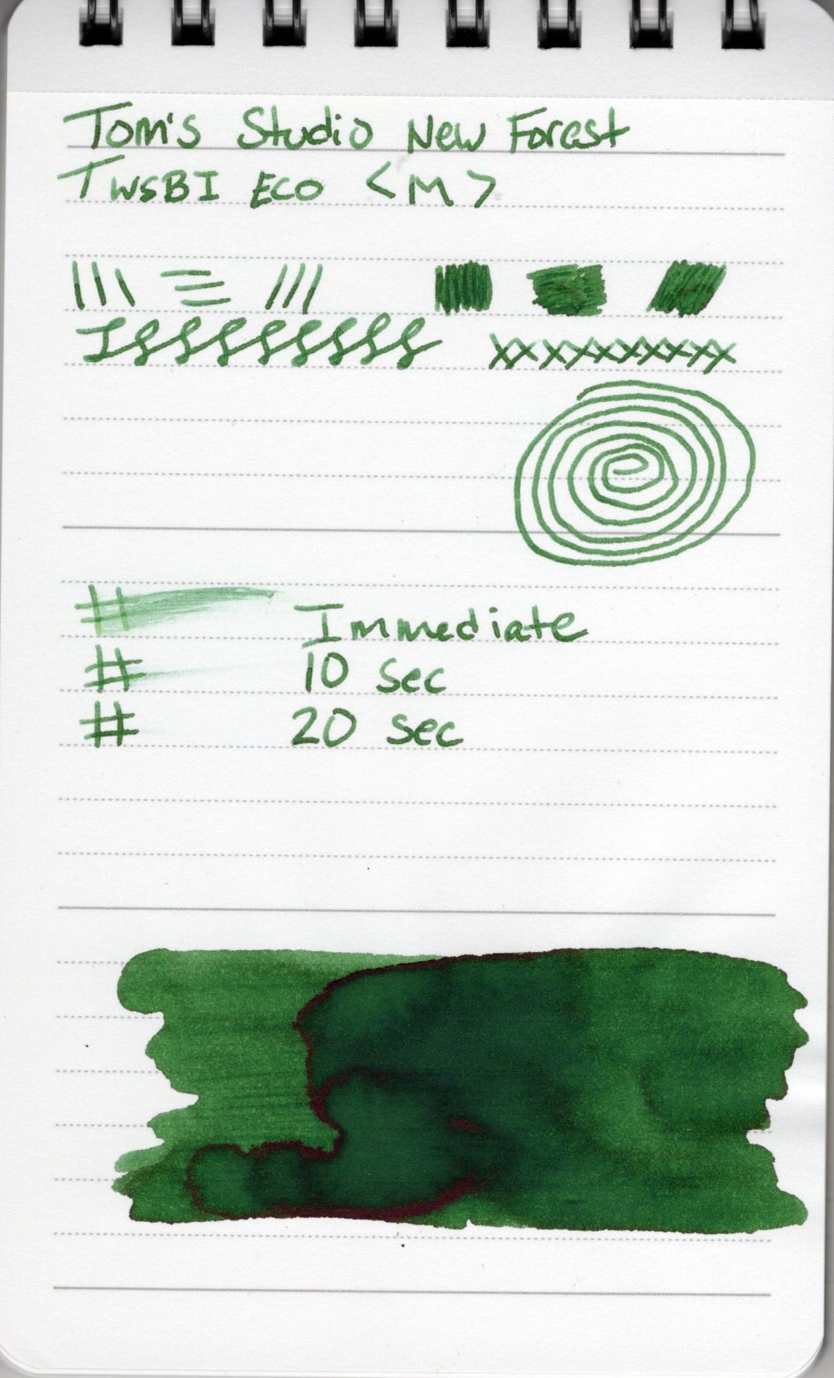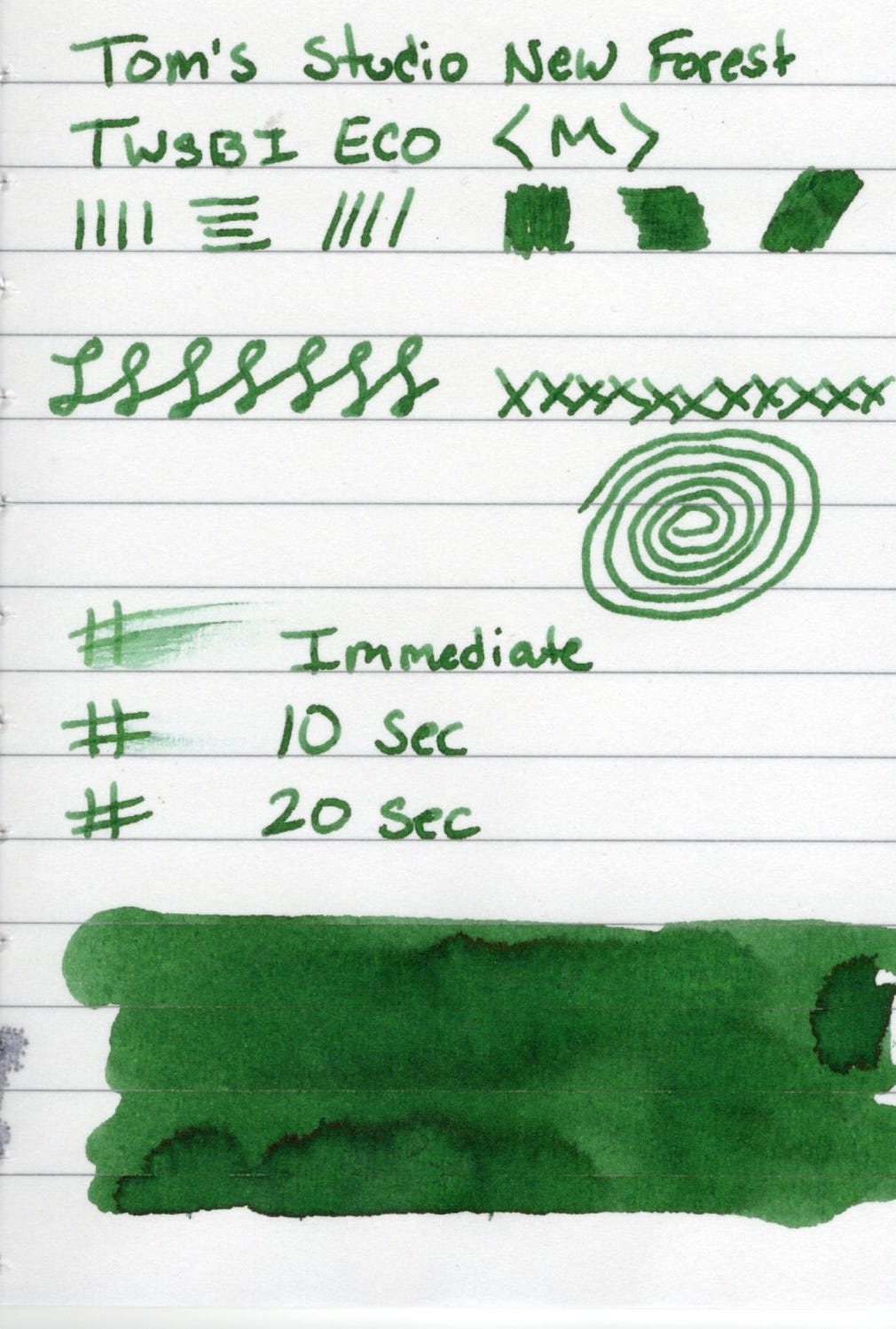 Today though I'm focused on the ink. I've got two inks from Tom's Studio, and my newest pickup is New Forest. At time of this writing New Forest is in stock at Atlas Stationers.